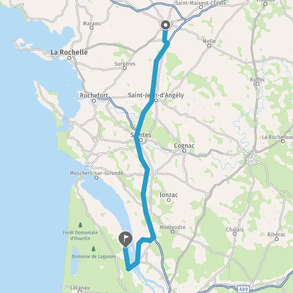 Au rond-point, prendre la 2ème sortie sur D650 (Route de Saint-Jean-d'Angély) et continuer sur 2,4 kilomètres