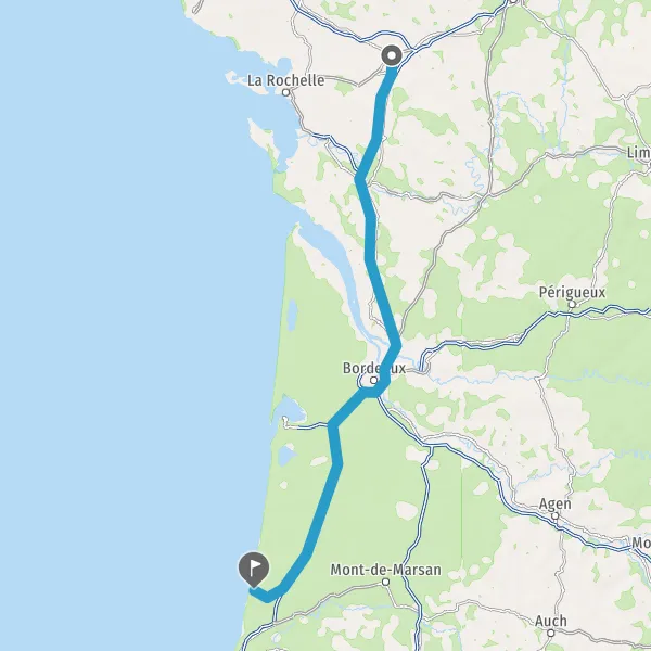 Prendre à droite et rejoindre A63. Continuer sur 12 kilomètres