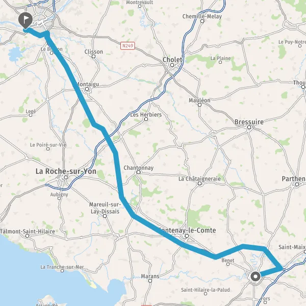 Au rond-point, prendre la 2ème sortie sur D148 (Route de Fontenay-le-Comte) et continuer sur 3,5 kilomètres