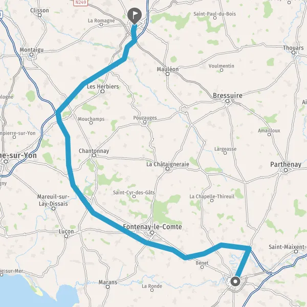Au rond-point, prendre la 2ème sortie sur D148 (Route de Fontenay-le-Comte) et continuer sur 3,5 kilomètres