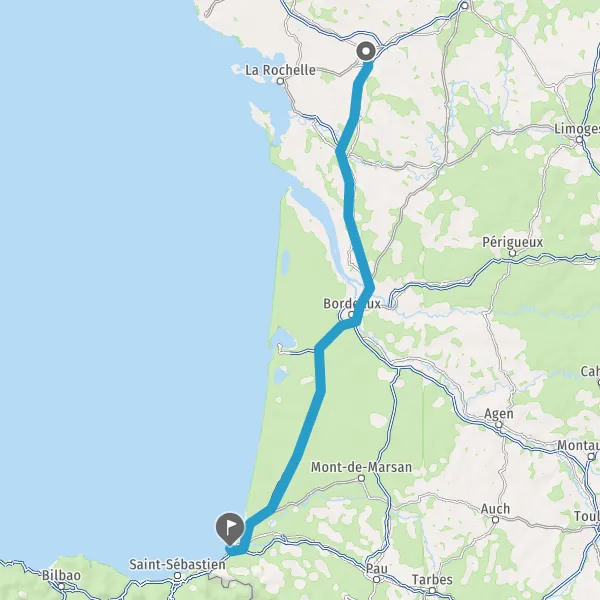 Prendre à droite et rejoindre A63. Continuer sur 183 kilomètres
