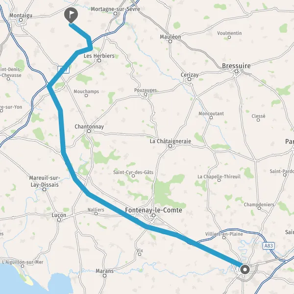 Continuer et rejoindre A83. Continuer sur 69 kilomètres