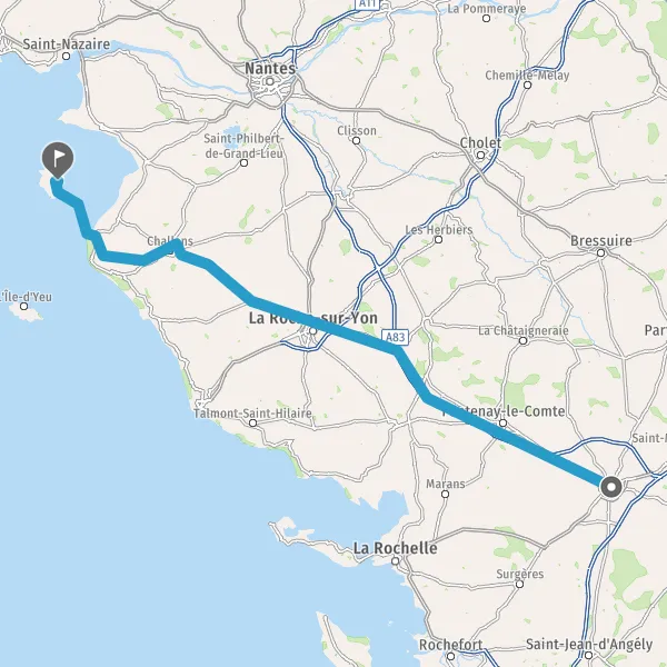Au rond-point, prendre la 1ère sortie sur D948 (Route de Noirmoutier) et continuer sur 2,3 kilomètres