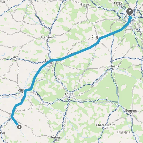 Prendre à droite et rejoindre A11 E60 E501. Continuer sur 234 kilomètres
