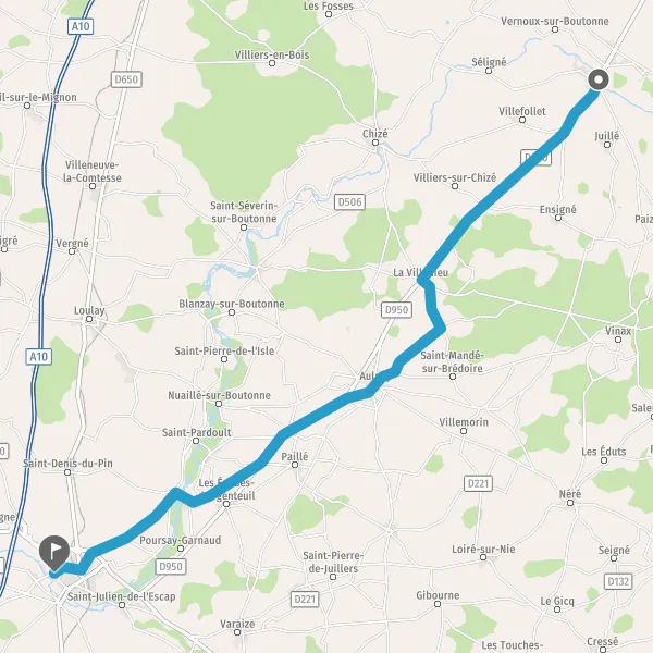 Tourner à droite sur D129e1 (Route de Saint-Jean d'Angely) et continuer sur 1,1 kilomètre