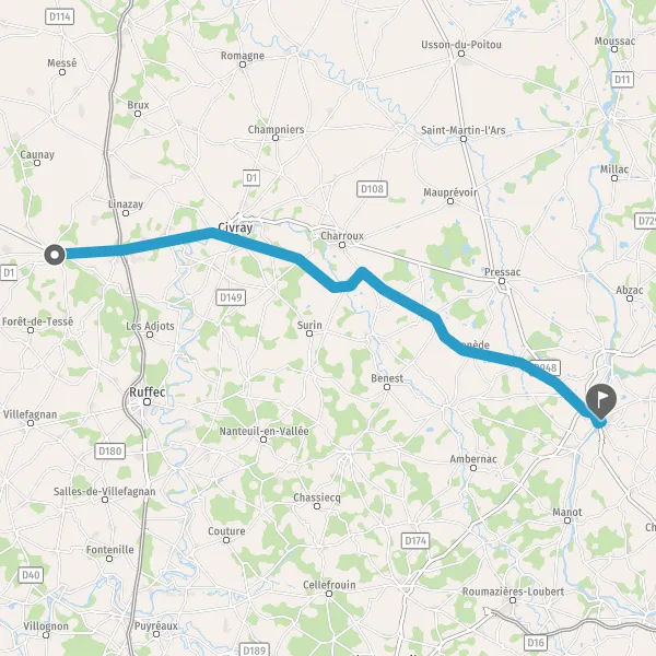 Tourner à droite sur D948 (Route de Civray) et continuer sur 5 kilomètres