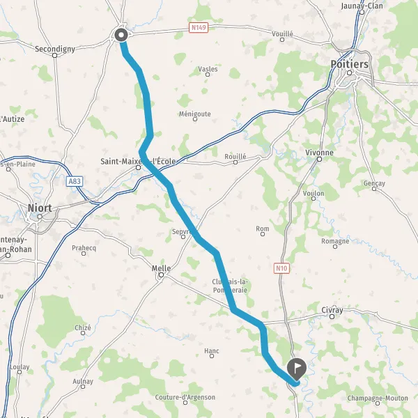 Tourner légèrement à droite sur D45 (Route de Lezay) et continuer sur 5,2 kilomètres