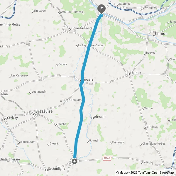 Prendre à droite et rejoindre D938 (Route de Thouars). Continuer sur 450 mètres
