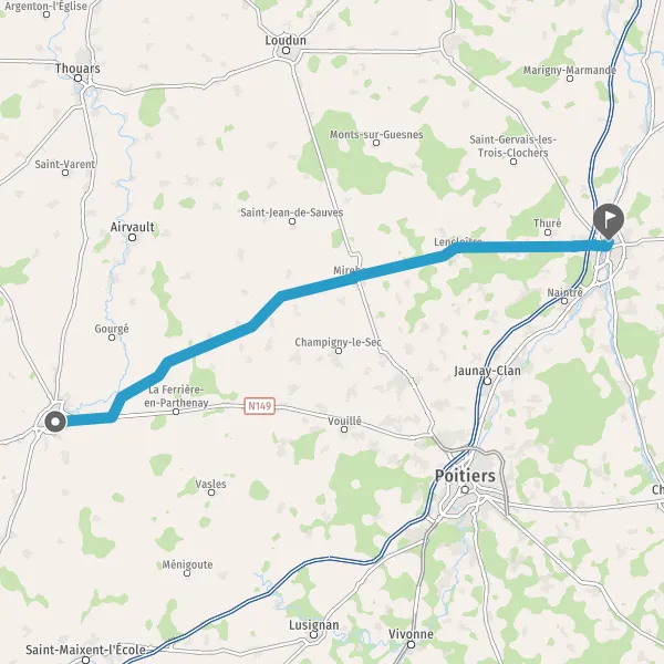 Au rond-point, prendre la 1ère sortie sur D725 (Route de Lencloître) et continuer sur 1,5 kilomètre