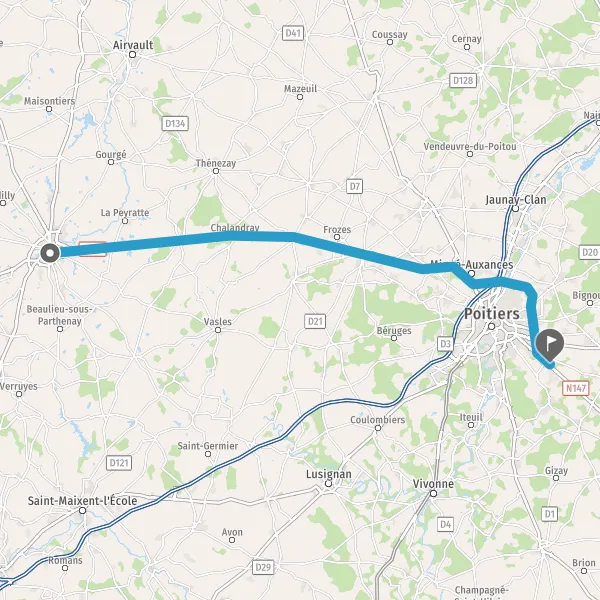 | Distance en voiture | 57 km à 60 km |