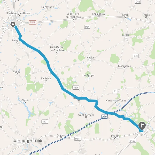 | Distance en voiture | 42,5 km à 44,0 km |
