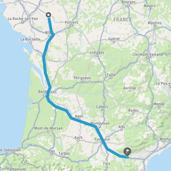 Tourner légèrement à droite sur D938ter (Rue de Niort) et continuer sur 40 kilomètres
