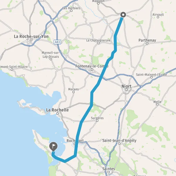Au rond-point, prendre la 1ère sortie sur D744 (Rue de Niort) et continuer sur 11 kilomètres
