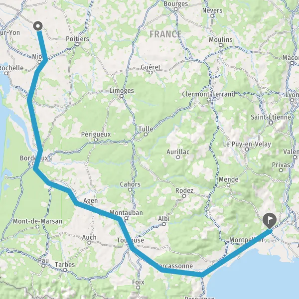 Tourner légèrement à droite sur D938ter (Rue de Niort) et continuer sur 40 kilomètres