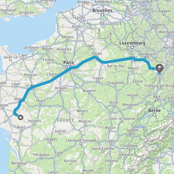 Prendre à droite et rejoindre A11 E60 E501. Continuer sur 234 kilomètres