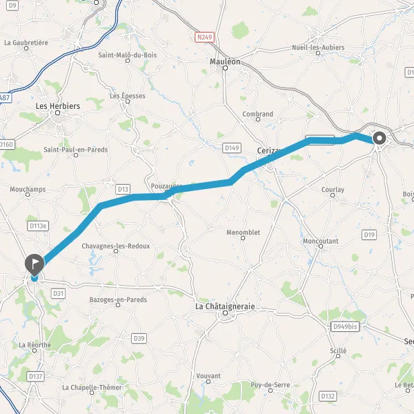 Au rond-point, prendre la 1ère sortie sur D175 D960bis (Route de Cerizay) et continuer sur 5,2 kilomètres