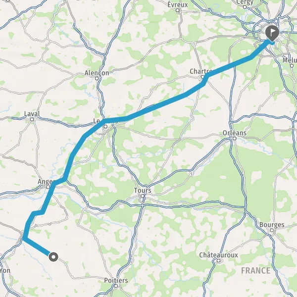 Prendre à droite et rejoindre A11 E60 E501. Continuer sur 234 kilomètres