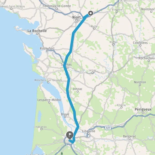 Avec le mode voiture, vous pouvez configurer vos options (type de véhicule, autoroute ou non, péage ou non, distance la plus courte), tout en ayant accès aux infos de circulation grâce à notre service d'info-trafic en temps réel. Ainsi faites des économies sur le coût ou la durée de votre voyage, en trouvant le trajet Saint-Maixent-l'École Bordeaux adapté à vos besoins.