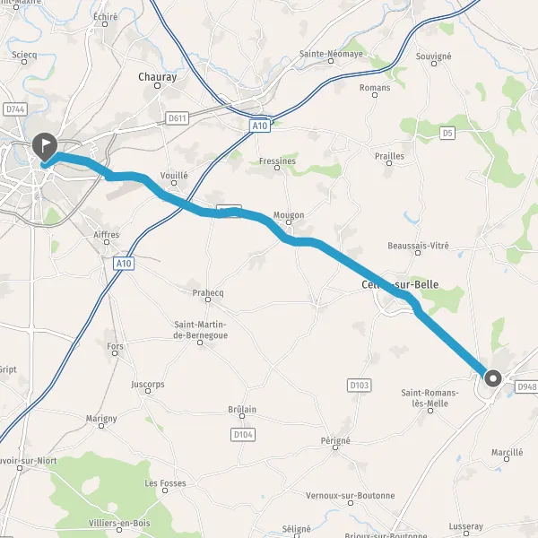 Prendre à droite et rejoindre D948 (Route de Melle). Continuer sur 350 mètres