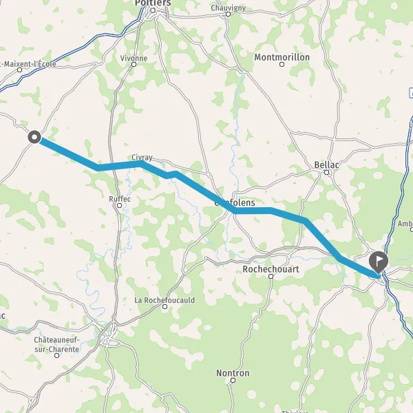 Au rond-point, prendre la 2ème sortie sur D103 (Rue Théophile Porcheron) et continuer sur 11 kilomètres