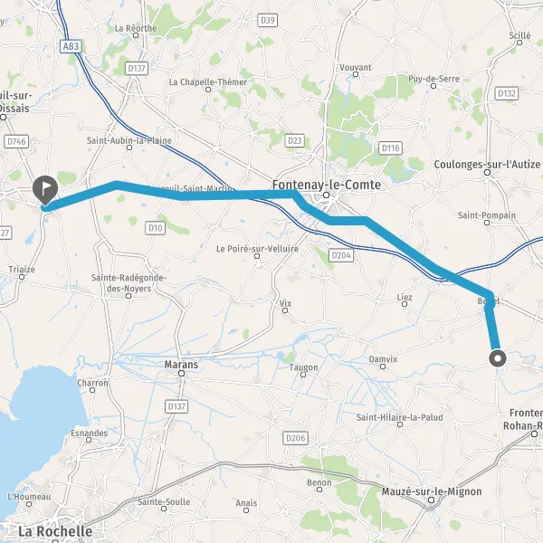 Au rond-point, prendre la 3ème sortie sur D148 (Route de Fontenay-le-Comte) et continuer sur 3,5 kilomètres