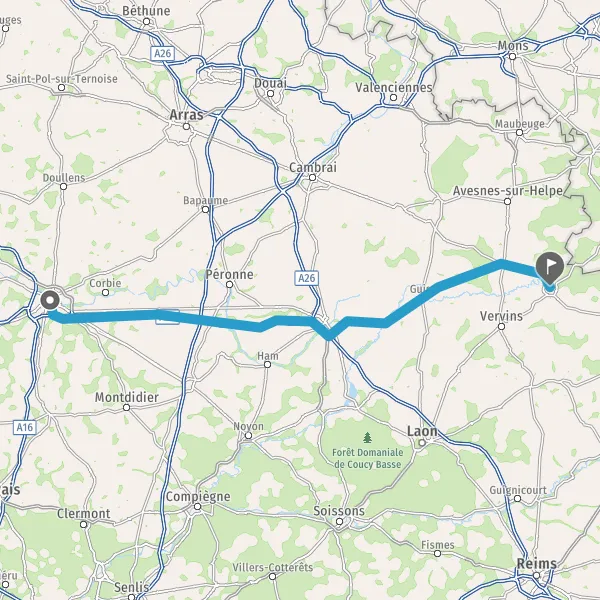 Prendre à droite et rejoindre A26. Continuer sur 6,4 kilomètres