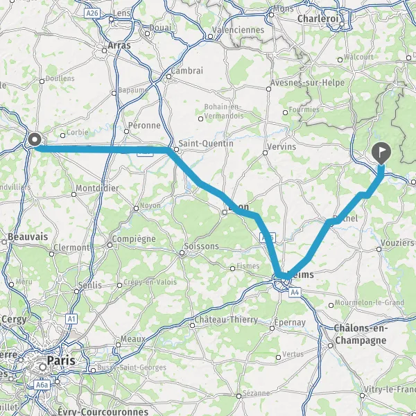 Prendre à droite et rejoindre A26. Continuer sur 89 kilomètres