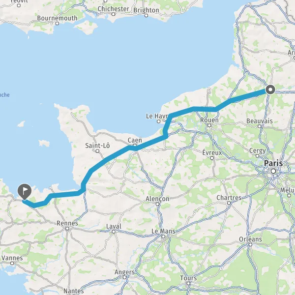 Prendre à droite et rejoindre A84 E401. Continuer sur 101 kilomètres