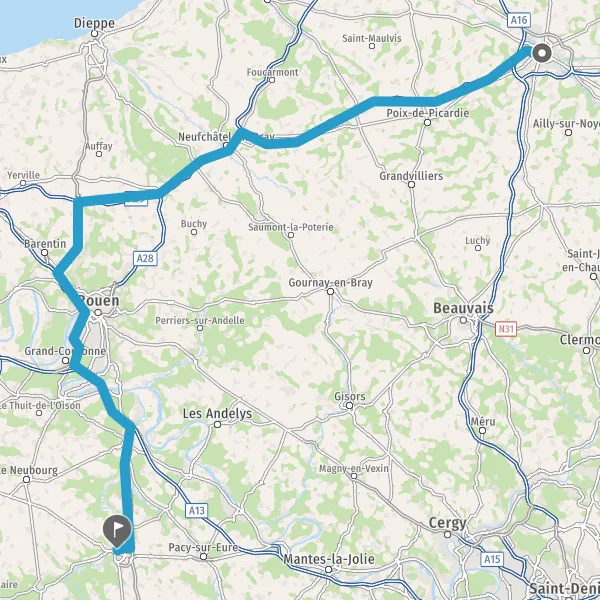 Prendre à droite et rejoindre A154. Continuer sur 27 kilomètres