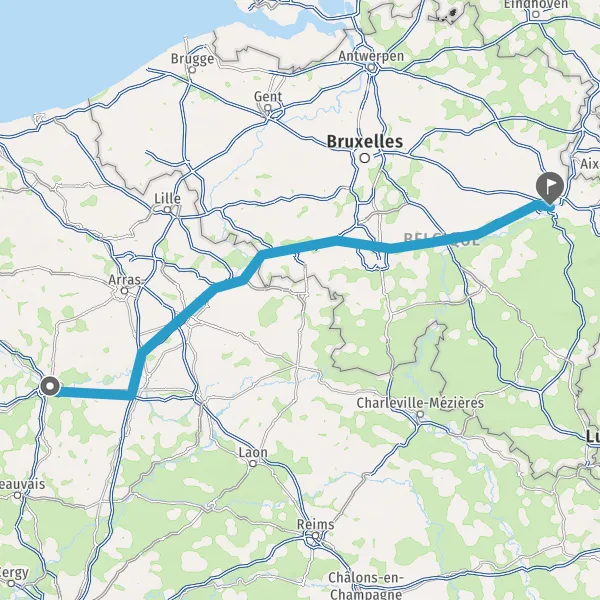 Continuer E19 (A2) sur 20 kilomètres