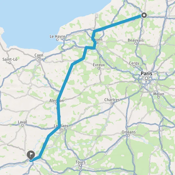 Prendre à droite et rejoindre A28 E402. Continuer sur 174 kilomètres