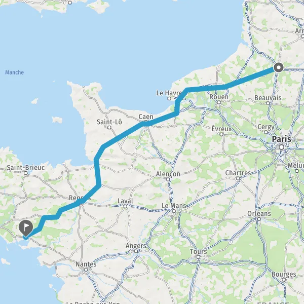 Prendre à droite et rejoindre A84 E401. Continuer sur 165 kilomètres