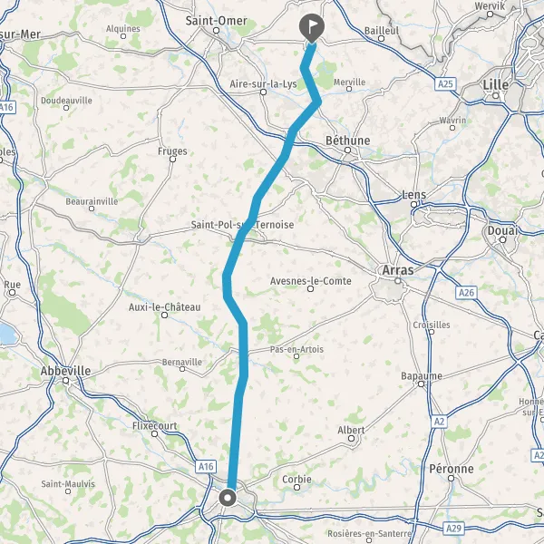 Tourner légèrement à droite sur D916 (Rue d'Aire) et continuer sur 550 mètres