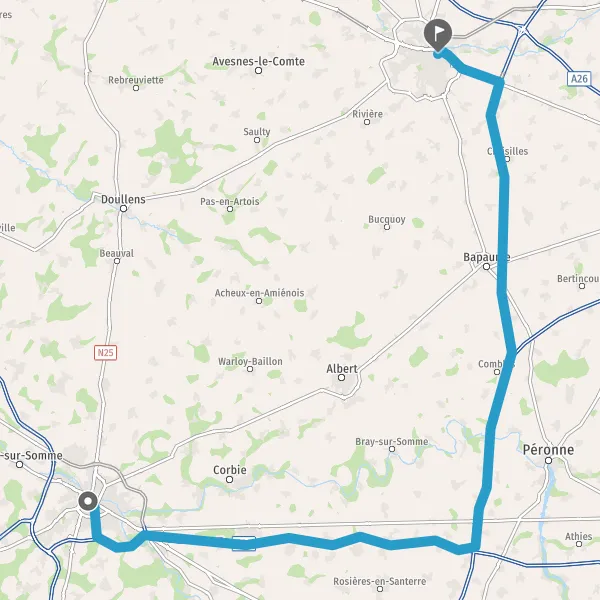 Au rond-point, prendre la 1ère sortie sur D11 (Route de Rainneville) et continuer sur 24 kilomètres