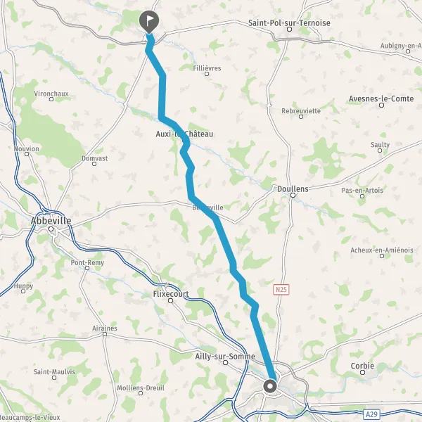 Au rond-point, prendre la 3ème sortie sur D933 (Rue de Vignacourt) et continuer sur 18 kilomètres