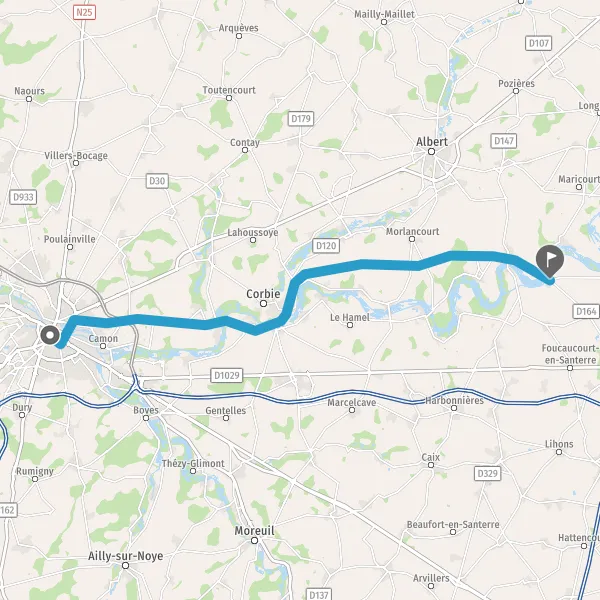 Au rond-point, prendre la 1ère sortie sur D1 (Route de Corbie) et continuer sur 8,2 kilomètres