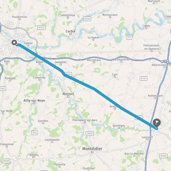 Au rond-point, prendre la 2ème sortie sur D34 (Rue d'Amiens) et continuer sur 600 mètres