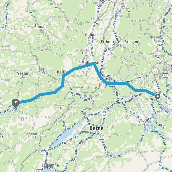 Prendre à gauche et rejoindre A36 E54 E60. Continuer sur 134 kilomètres