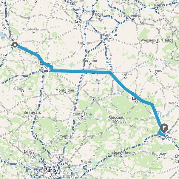 Prendre à droite et rejoindre A26. Continuer sur 93 kilomètres