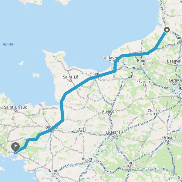 Prendre à droite et rejoindre A84 E401. Continuer sur 165 kilomètres