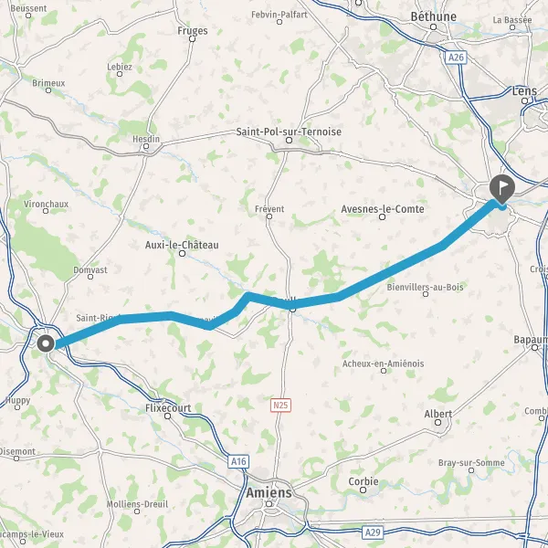 Au rond-point, prendre la 2ème sortie sur D925 (Route de Doullens) et continuer sur 23 kilomètres