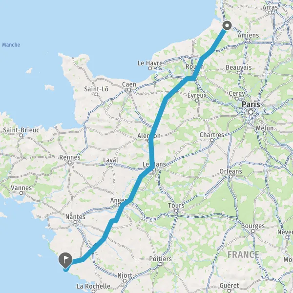 Continuer E501 (L'Océane) sur 84 kilomètres