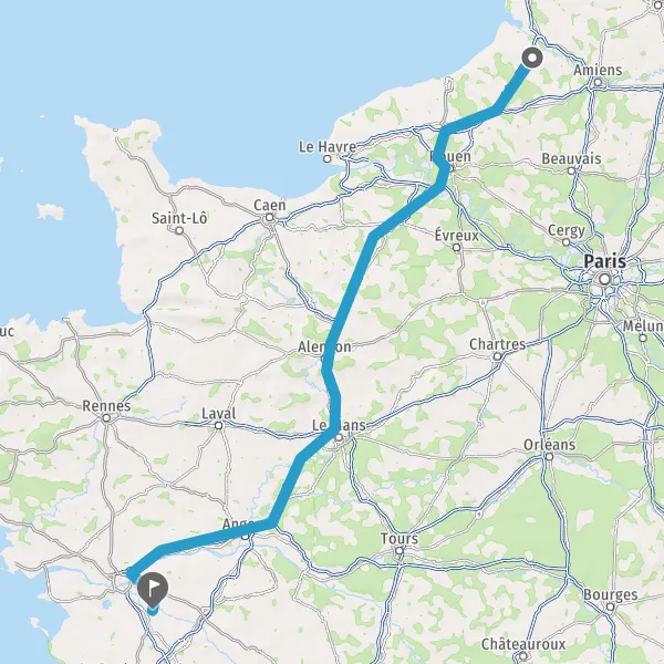 Continuer E501 (L'Océane) sur 165 kilomètres