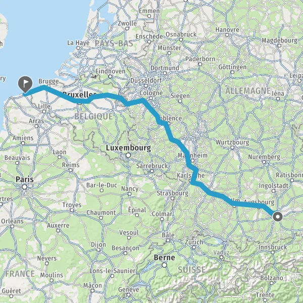 Continuer et rejoindre B2R (Isarring). Continuer sur 2,5 kilomètres
