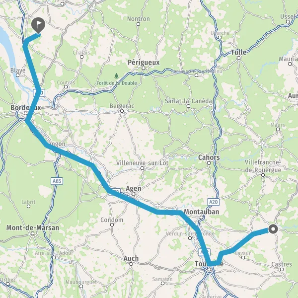 Prendre à droite et rejoindre A62. Continuer sur 4,8 kilomètres