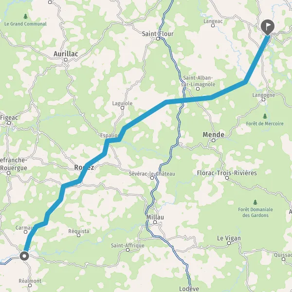 Tourner légèrement à gauche sur D987 (Place du Foirail) et continuer sur 22 kilomètres