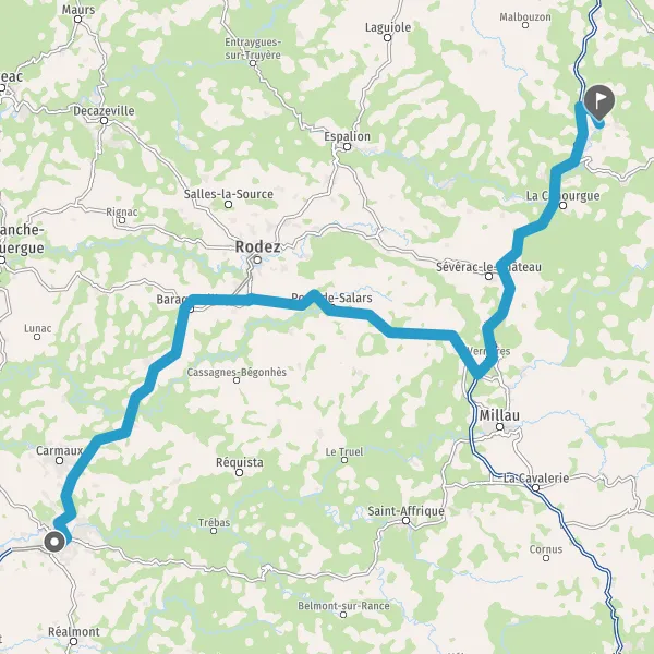 Au rond-point, prendre la 3ème sortie sur N88 (Route de Laissac) et continuer sur 32 kilomètres