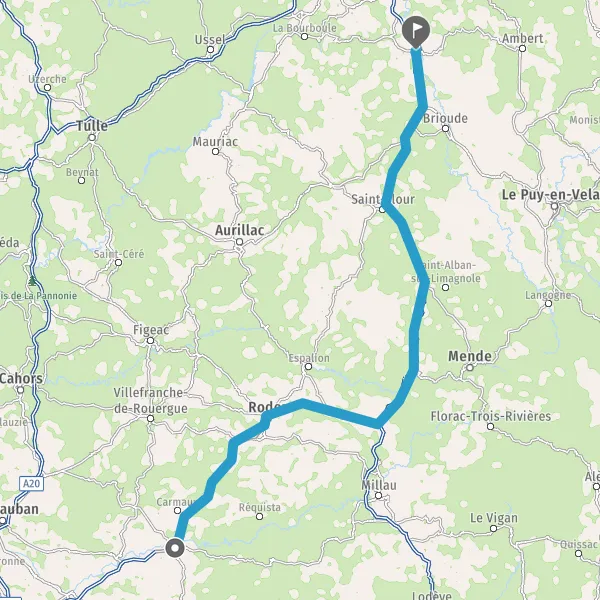 Tourner à droite sur D921 (Route de Saint-Flour) et continuer sur 26 kilomètres