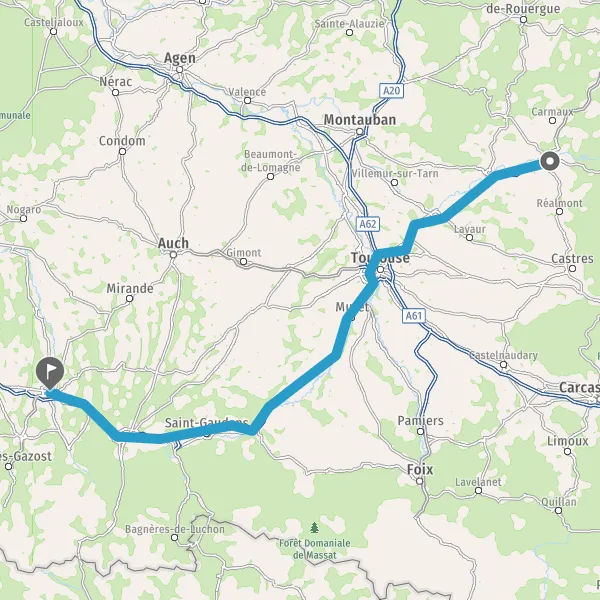 Prendre à droite et rejoindre A62. Continuer sur 4,8 kilomètres