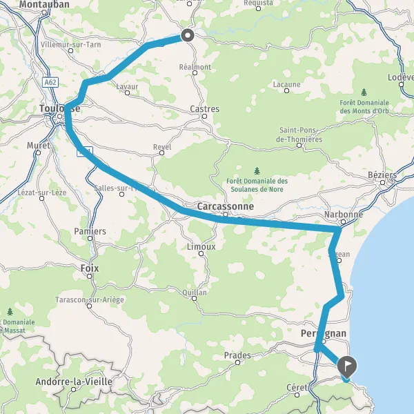 Prendre à droite et rejoindre A9 E15. Continuer sur 60 kilomètres